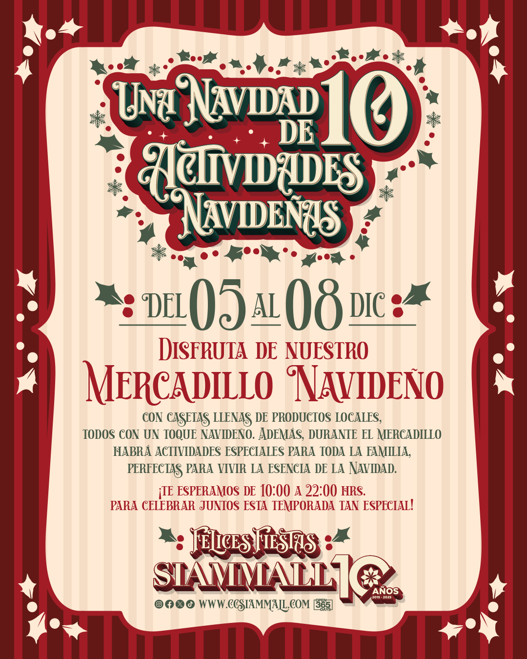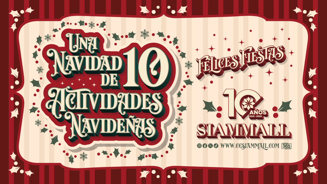 La Navidad llega a Siam Mall cargada de ilusión, diversión y, por supuesto, muchas actividades para disfrutar en familia. Este año hemos preparado una agenda muy especial para que cada visita se convierta en un recuerdo único. Del 5 al 23 de diciembre, nuestro centro comercial se transforma en un auténtico escenario navideño, con talleres, espectáculos, personajes, música y la esperada llegada de Papá Noel.