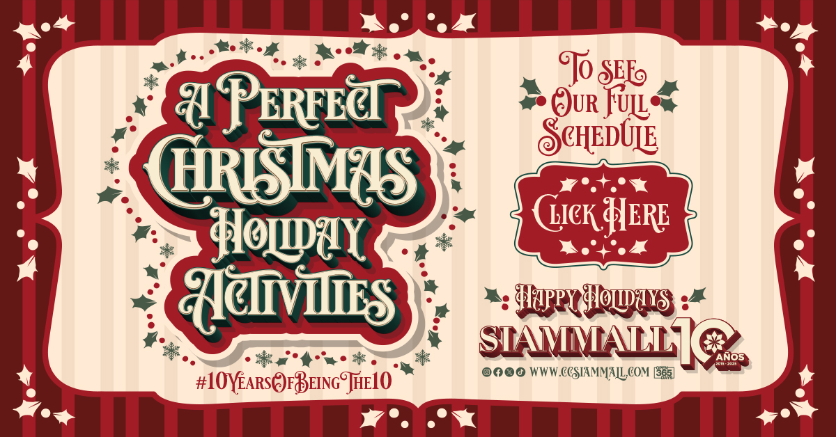 Christmas arrives at Siam Mall filled with joy, fun, and of course, plenty of activities for the whole family to enjoy. This year, we’ve prepared a very special schedule so that every visit becomes a unique memory. From December 5th to 23rd, our shopping center transforms into a true Christmas wonderland, with workshops, shows, characters, music, and the long-awaited arrival of Santa Claus.