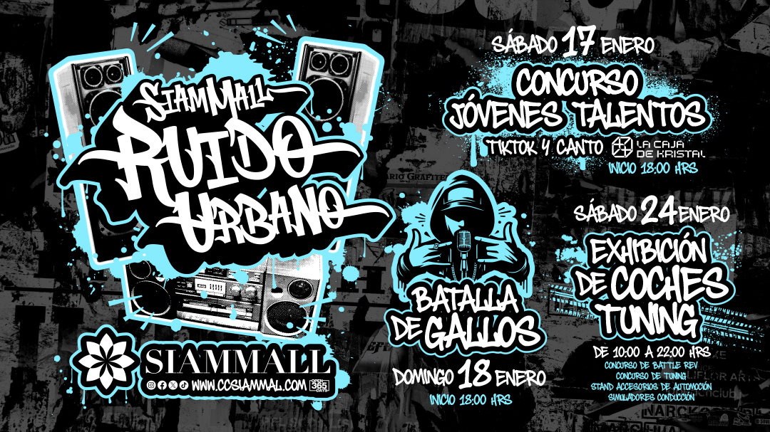 En Siam Mall arrancamos el año con un plan que hará vibrar a toda la isla. Ruido Urbano aterriza con una programación cargada de música, creatividad y talento joven, convirtiendo el centro comercial en el punto de encuentro de la cultura urbana en Tenerife.